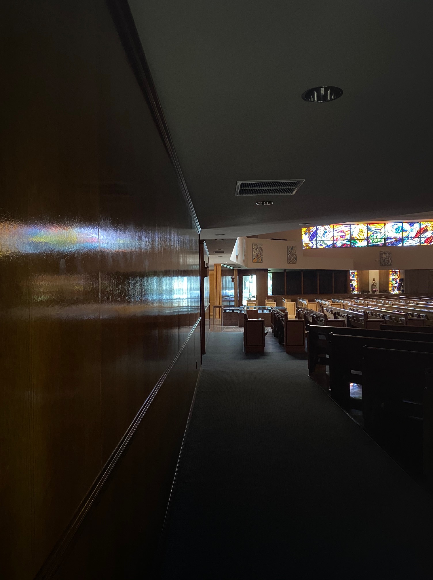 Though the doors were tightly locked up, I was able to take some photos of St Norbert’s for your edification.