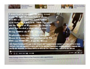 KingNewsom: “I created the recession in California. and Auntie was getting in my way. Her assistant called secretly to set up her hair raising appt., and since we bought Obama’s NSA spy equipment and monitor all communications, we caught her red err blue handed. Her call set off my despicable plot.