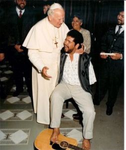 BTW, José Antonio Meléndez Rodríguez has no arms or hands, a Thalidomide victim, and he was “gifted” to the great Pope of the people when John Paul II visited the US.