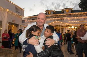 Chef Bruno Serato, owner of the Anaheim White House, gives Evelyn Gastelum, 9, and Matthew Garcia, 9, at the Thanksgiving Winter Wonderland event a few years ago. The owner of Anaheim White House hosted over100 underprivileged children from the Boys and Girls Club of Anaheim to a Thanksgiving feast and snow day at the restaurant. Santa Claus along with members of the Anaheim Fire Department greeted children as they arrived at the Anaheim White House and then lead them through a Winter Wonderland blanketed in 10 tons of real snow and a Thanksgiving meal