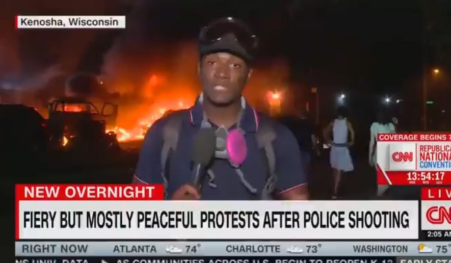 ABCNNBCBS AssPost-Times is an abstraction of the wholly owned DNC subsidiary responsible for being advocates and repeaters, not reporters, for those who are cemented to the nation’s former capital. ABC, CNN, NBC and CBS, plus Washington Post and the NY Times and of course the AP carry the water, revising history on the fly, even as you watch the chyrons across the screen. Speaking of chyrons, one of the most imbecilic and ironic goes back to August 20, 2020 in Kenosha with a “reporter” telling us how peaceful things are as the city burns behind him.