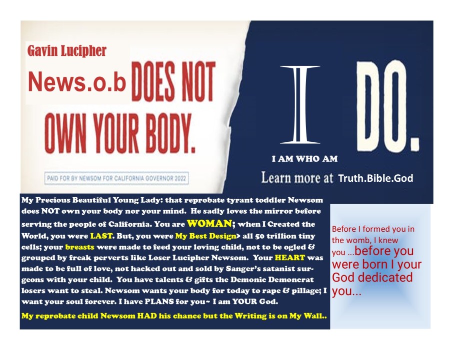A few years ago, this author recorded a short clip: Patty told the world she was a rape survivor. She personally was not raped by a scumbag, but her birth mom was. Something Newsom or Kamala (she still has David Daleiden’s personal property she took as AG from him using 11 of her AGoons butt bumped in his tiny apartment robbing him of his intellectual stuff) would NEVER do is give wise counsel. Whether Gov Hairgel’s national AborTours or VPAK47 Kamala, both would say this to Patty’s distraught victimized mom:
