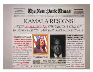 “I prefer hacked up black girls extracted from Mother Wombs instead of fracked up Black Gold extracted from mother Earth. I hate cars and gas, so my friend Xavier the Deceiver rewrote the 39% gas tax rate recall of prop 6. But I LOVE, absolutely LOVE deceiving distressed and in crisis moms to let us extract their kids for parts. I have a quid pro quo $82,000 abortionists’ donation to repay and no better way than helping them hack up, draw and quarter defenseless LIVING humans who won’t vote for me anyways 18 years from now. I AM unique; frankly, would California want another Kamala the Pirate anyways? I wanna wanna be prez so I will need more blood dollars to beat out the other 40 Dems. Trying to show I AM cool and hookupable, have you seen my Music Video lately, how at 29 I got my start going naked with a 60 year old Brown mayor and defying his wife Blanche? I am Kamala the Pirate and I approve this message.”